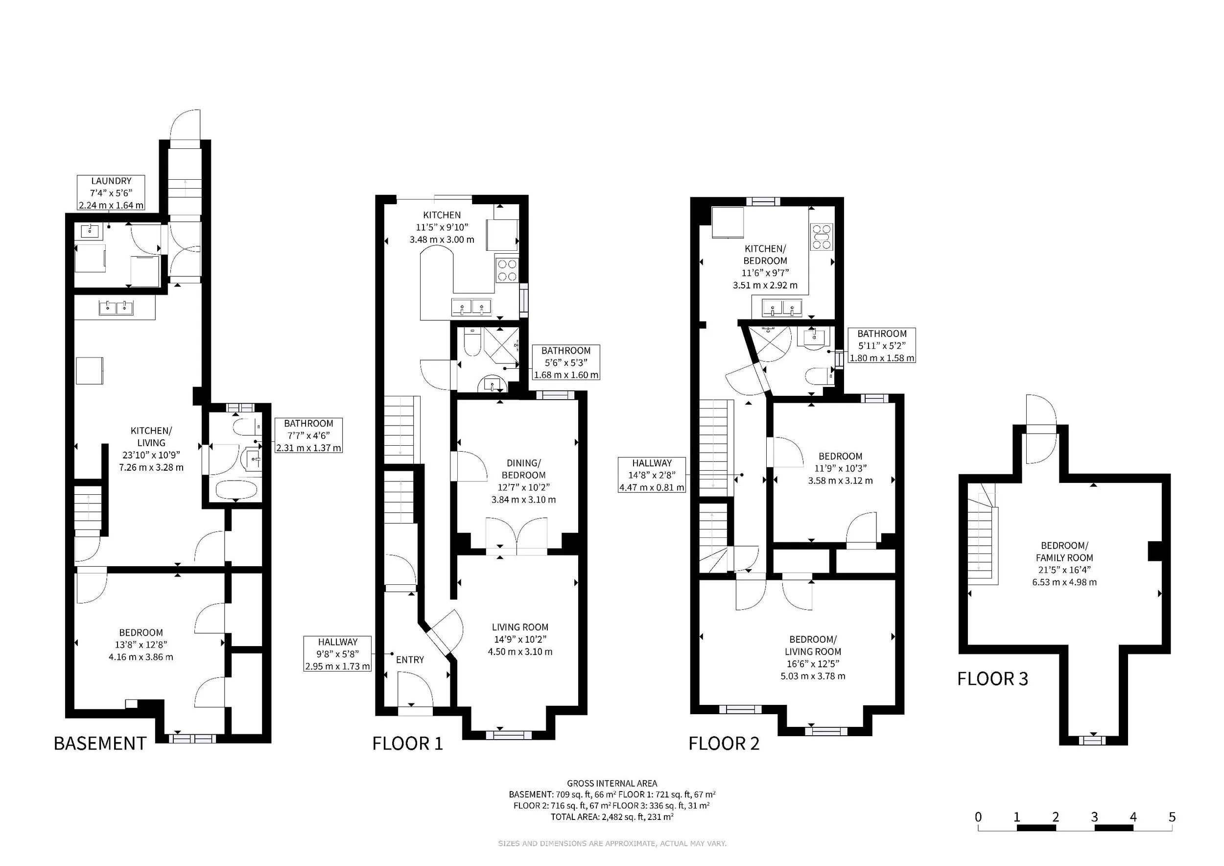 Three self-contained apartments: a one-bedroom on the main floor, a one-bedroom basement suite, and a bright two-bedroom upper unit with its own kitchen, generous living area, and private rooftop deck. Yet the home remains fully connected for an effortless conversion back to a stunning 4+1 bedroom single-family home whenever you're ready.